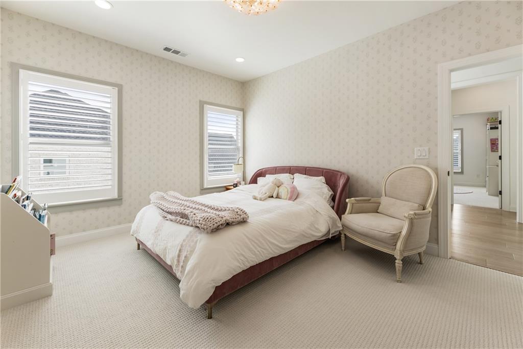 Overlooking pristine green forests and Sweat Mountain, the view is truly exceptional. Properties of this caliber rarely enter the market, and even less frequently as new builds. With over $200,000 in additional upgrades, the main kitchen is equipped with a stainless-steel Wolf dual-fuel gas range with griddle, Sub-Zero refrigerator, Wolf microwave, and a custom Batten hood vent. Kitchen cabinetry extends to the ceiling with glass fronts and integrated puck lighting. Silestone quartz countertops offer non-porous durability and high resistance to wear. Additional features include upgraded rocker light switches, 2 EV charging setups available. One is equipped with a 240V power outlet and the other is wired and ready for a Tesla Wall Connector, epoxy-coated garage floors, a walkout terrace level ready for further personalization, high-end Worthing Holland Park flooring, and under-cabinet kitchen lighting. The exceptionally tasteful and well-dressed powder room highlights designer wallpaper, bespoke accoutrements such as a designer mirror, wainscotting and electric torch lighting. Built-in office bookshelves, custom dining room walls, upstairs library shelving, and a functional mudroom enhance both aesthetic and utility. Custom closets throughout deliver exceptional organization and surpass typical expectations for homes in this category. Automatic screens on the rear of the home and plantation shutters on the front offer both convenience and aesthetic harmony. A single touch reveals the breathtaking morning views from the primary suite. Every element has been thoughtfully selected and meticulously executed.
